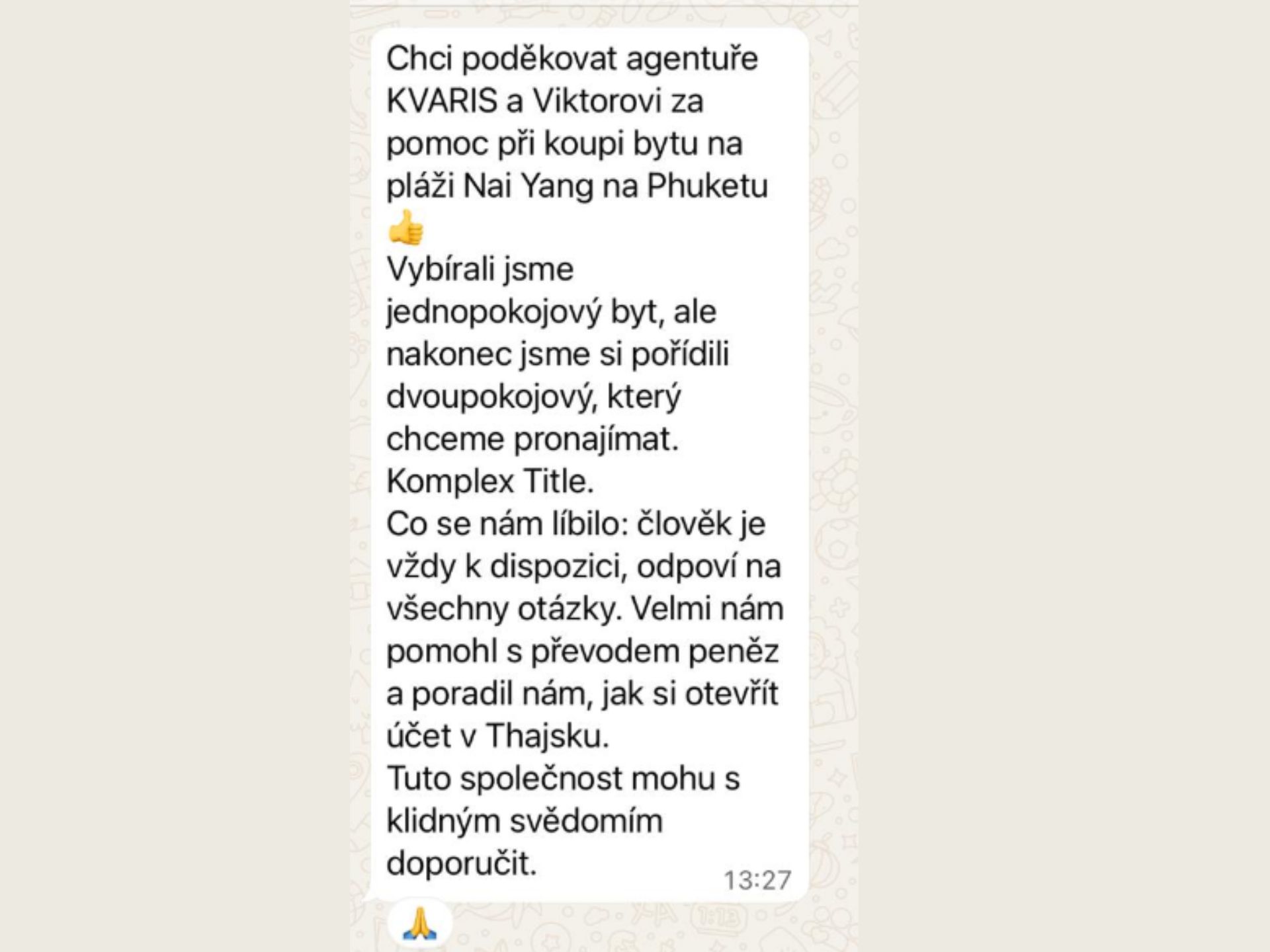 Mnoho klientů kupuje, pronajímá a prodává nemovitosti, aniž by kdy přijeli do Thajska. Pomůžeme vám ve všech fázích.