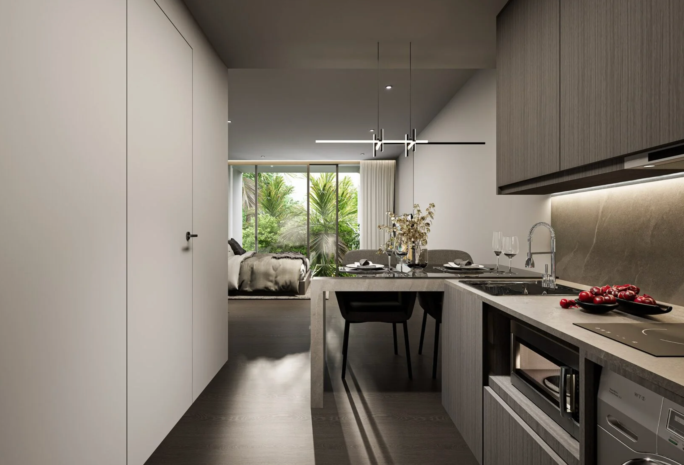 Эта просторная студия — идеальный выбор для тех, кто хочет купить апартаменты в этом проекте на юге Пхукета. Расположенный между пляжами Най Харн и Раваи, комплекс сочетает современную архитектуру, стильный дизайн и продуманную инфраструктуру для жизни и инвестиций.