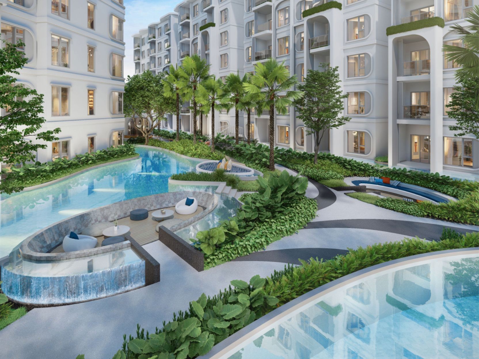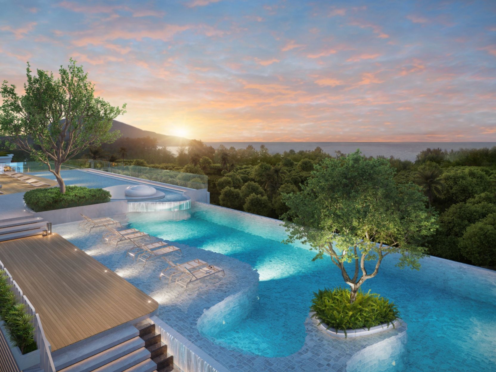 Комплекс предлагает роскошные квартиры в окружении потрясающей природы и развитой инфраструктуры. Более 27 объектов для отдыха и развлечений: от бассейнов и СПА до фитнес-центра и зоны для йоги под открытым небом.