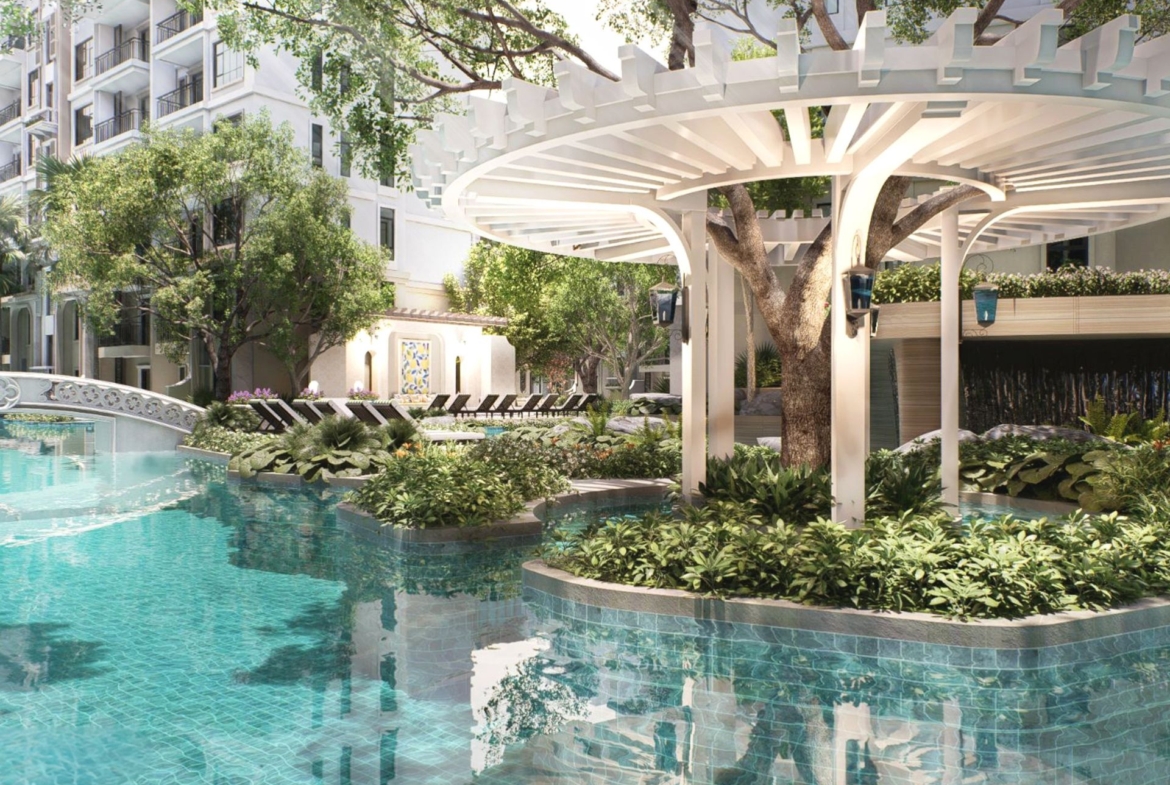 Территория комплекса больше похожа на пятизвездочный курорт: несколько бассейнов, включая спортивный и панорамные на крыше, фитнес-центр, SPA, кинотеатр, коворкинг, кафе и бары. Для детей предусмотрены игровые зоны и клубы, а для владельцев домашних животных — отдельные пространства для прогулок.