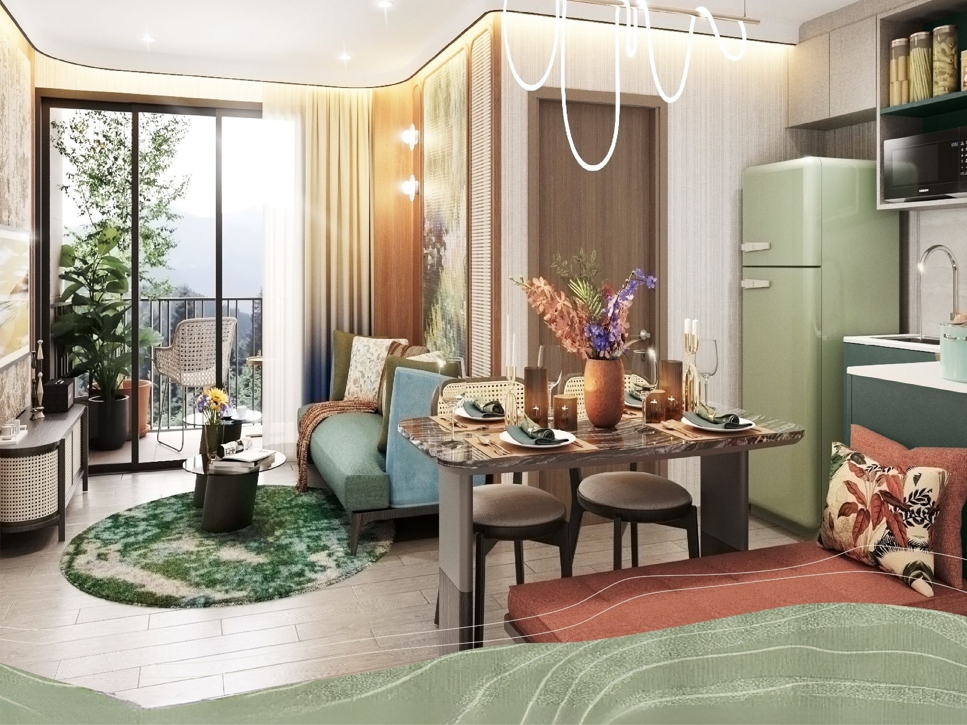 Локация отличается развитой инфраструктурой: коворкинг, переговорная комната, игровые комнаты, 24 зоны отдыха и развлечений, кинотеатр, фитнес-центр, а также рабочие и лаунж-пространства, прачечная, круглосуточное наблюдение. Наличие Pet Club и парка для выгула питомцев уникальны для комплексов на острове.