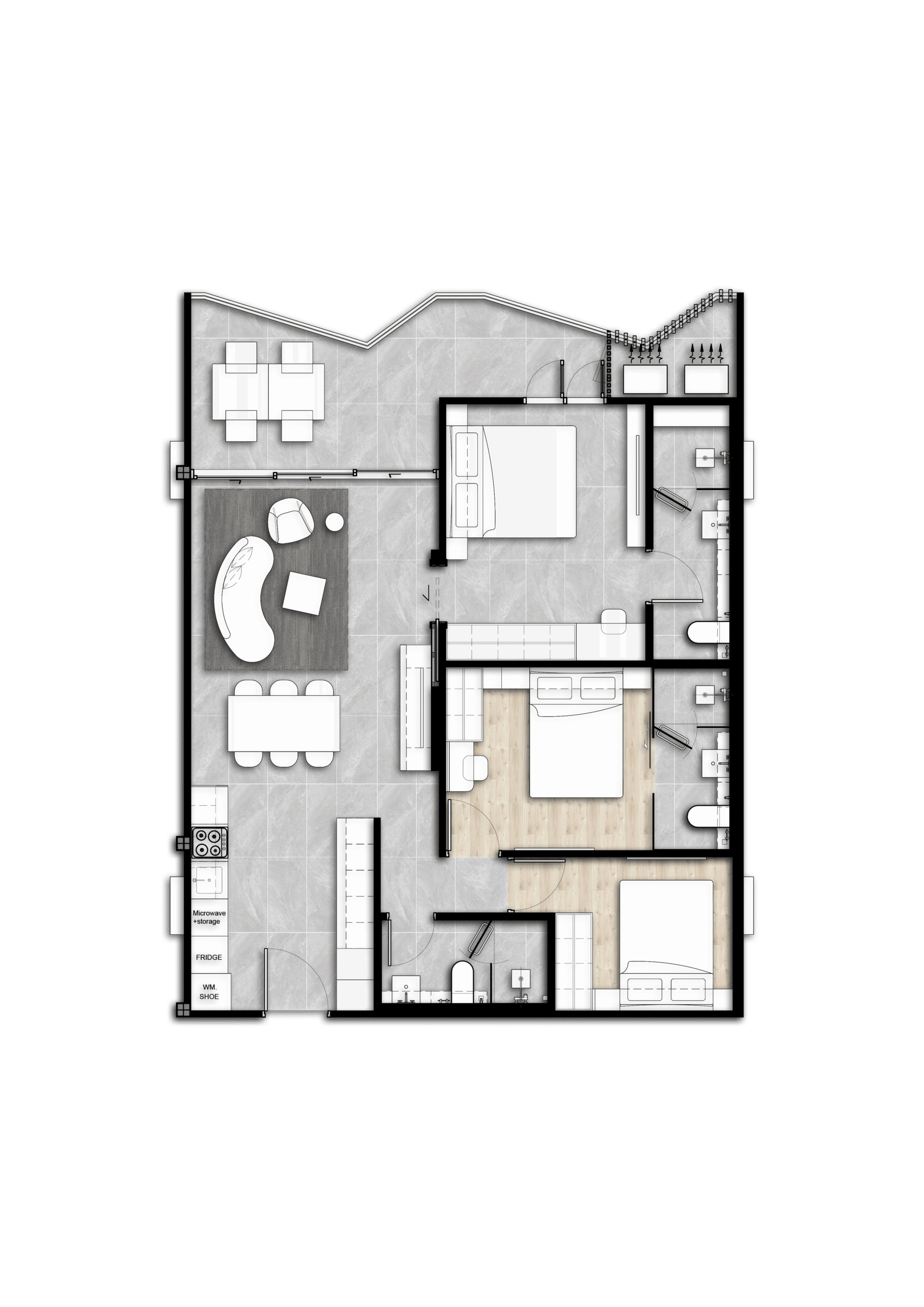 Проект выделяется элегантным архитектурным стилем, просторными планировками и богатой инфраструктурой. Жители смогут наслаждаться панорамными бассейнами на крыше, современным фитнес-центром, СПА и сауной, а также проводить время в кинотеатре или уютных лаунж-зонах.