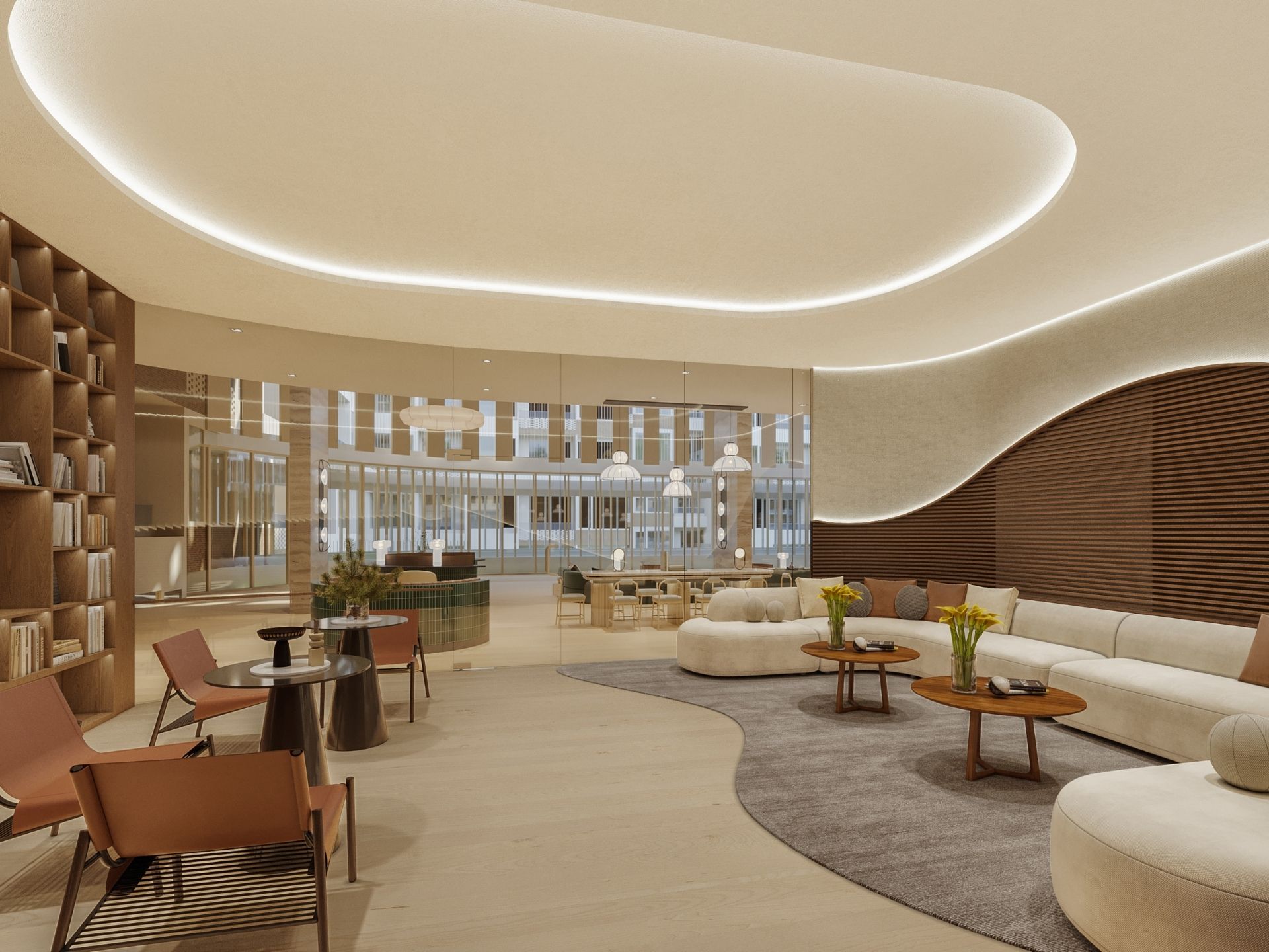Лобби, приватная зона, комнаты для встреч, библиотека, студия для мероприятий, коворкинг, детский бассейн, фитнес зона, джакузи, сауна – всё это лишь малая часть того, что доступно жителям данного комплекса.